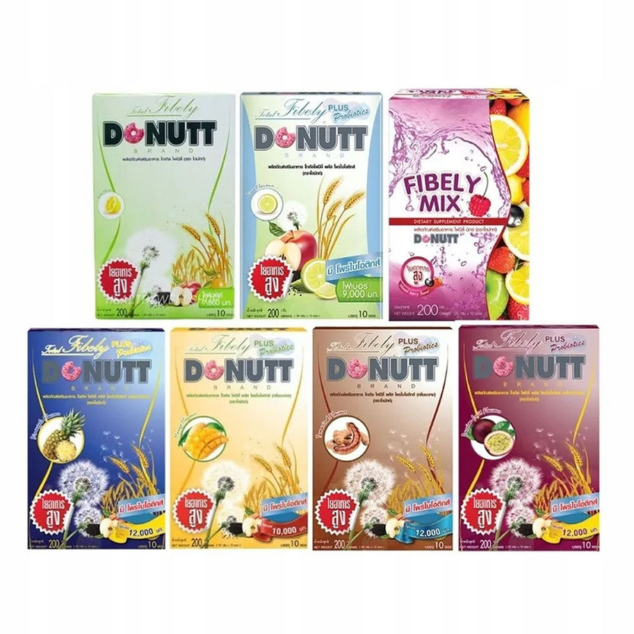 Donutt Fibely Mix to rozpuszczalny napój błonnikowy o owocowo-warzywnym aromacie, przygotowany z naturalnych ekstraktów i składników roślinnych.