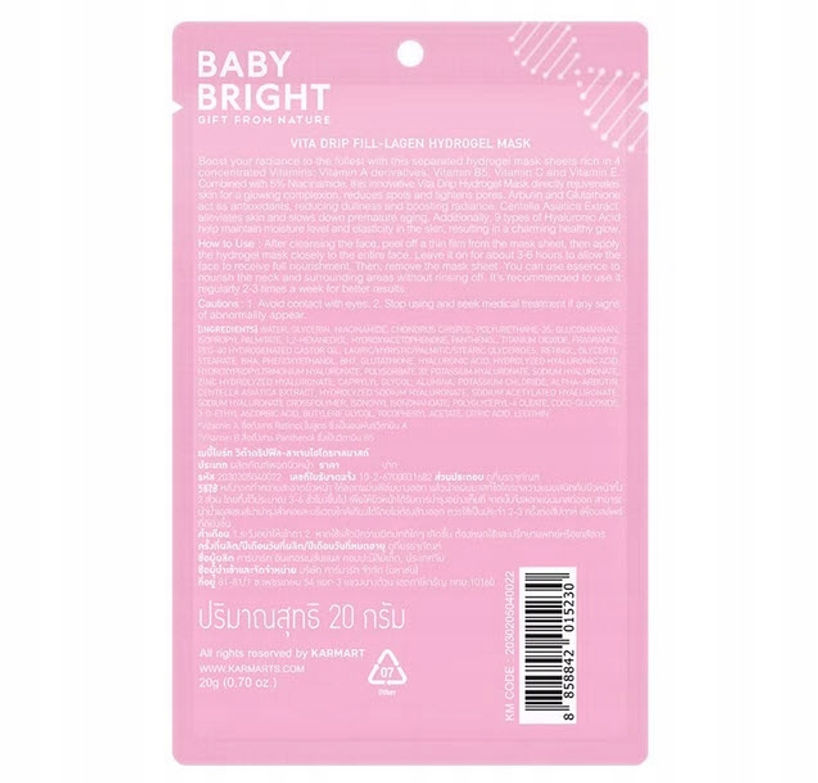Tajska maska hydrożelowa Baby Bright Vita Drip – intensywna regeneracja i rozświetlenie skóry - Baby Bright Vita Drip Fill-Lagen Hydrogel Mask 20g