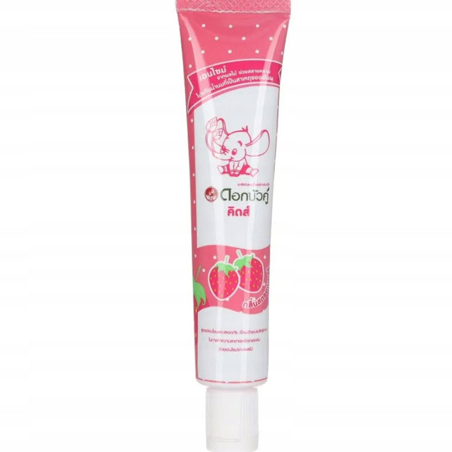 Ziołowa pasta do zębów Dok Bua Ku Kids o pysznym truskawkowym smaku + miękka szczoteczka do zębów. Stworzona specjalnie dla dzieci – bezpieczna, delikatna i skuteczna.